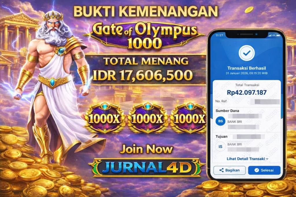 Jurnal4D – Bukti Kemenangan 31 Januari 2026 Tak banyak yang menyangka, dengan modal awal hanya 500 ribu rupiah, seorang pemain mampu mencatatkan hasil luar biasa dengan total kemenangan mencapai 42 juta rupiah dari permainan GATE OF OLYMPUS 1000 .