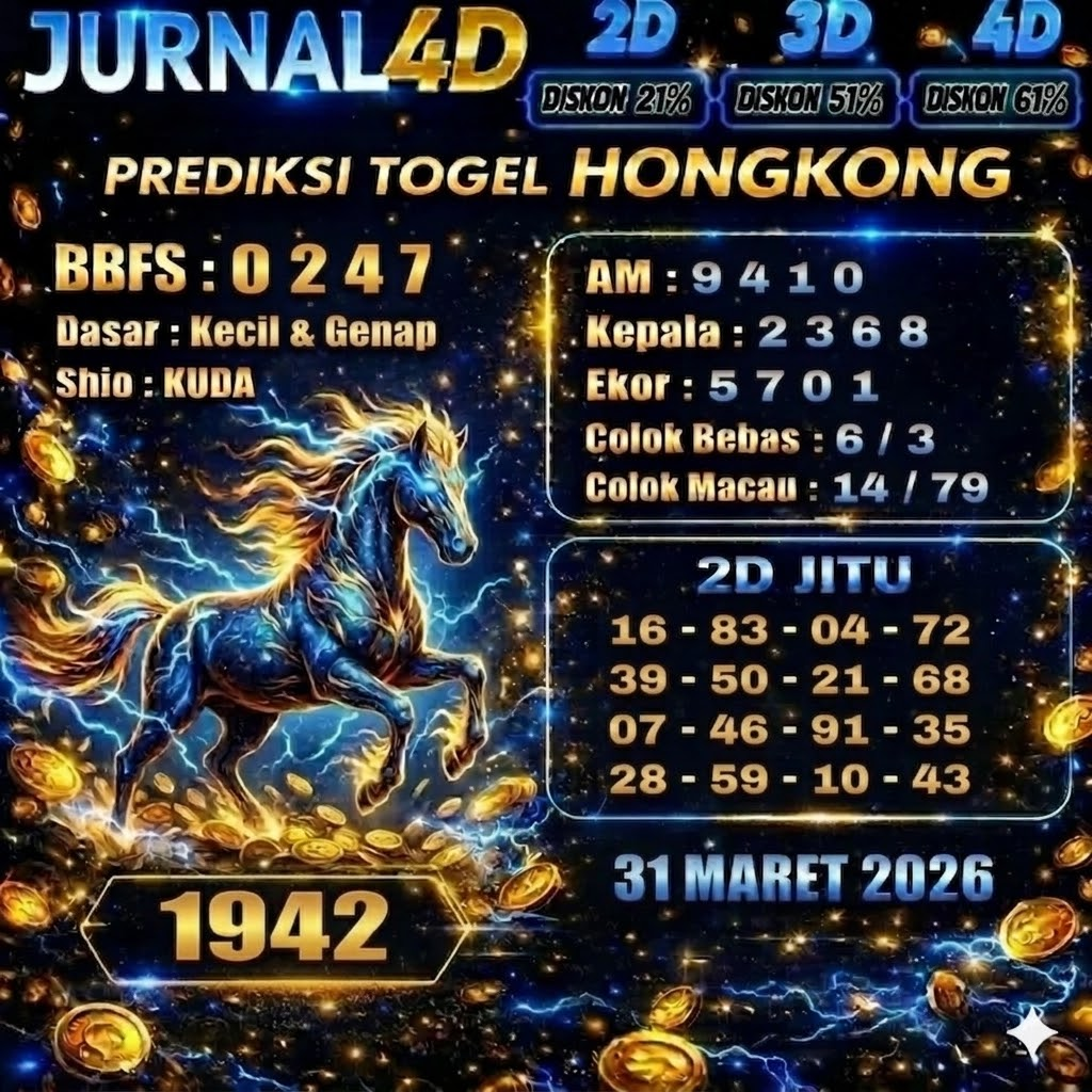 Jurnal 4D – Prediksi Hongkong 31 Maret 2026 JURNAL4D kini semakin di minati oleh para pemain, karena perkembangan togel online terus mengalami peningkatan yang cukup signifikan. Selain itu, pasaran HK juga di kenal sebagai salah satu pilihan favorit, sebab jadwal hasil pengundian berjalan konsisten dan mudah dipantau setiap hari.