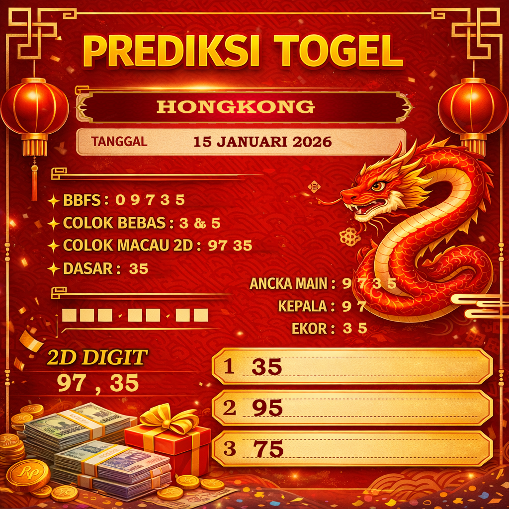 Berikut ini adalah rangkuman prediksi Hongkong Pools 15 Januari 2026 yang dirangkum berdasarkan analisa terbaru: